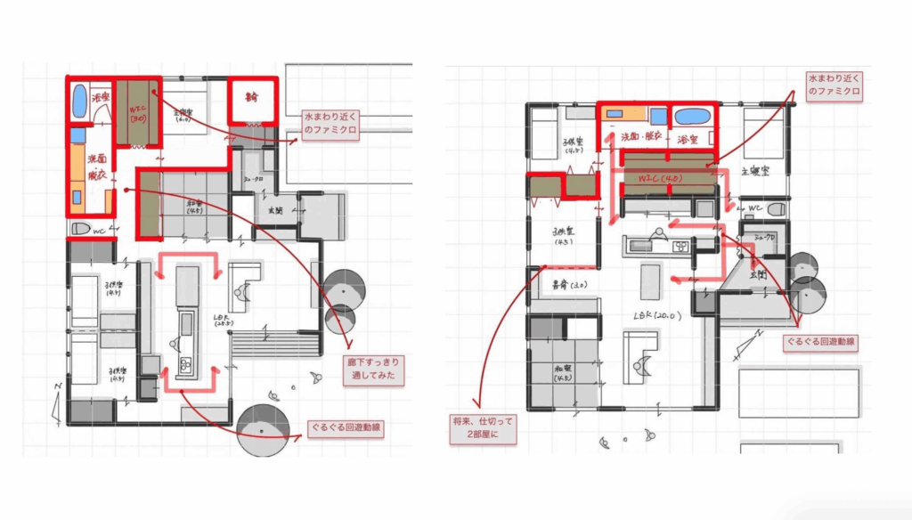 暮らしに合わせた内装レイアウトや仕上げを計画します